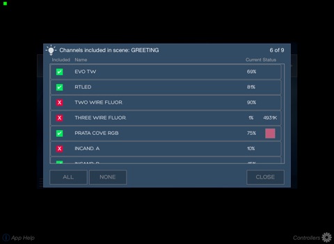 Fresco Mobile is a remote control for the Fresco FCS 7TSN lighting control station by Acuity Controls, giving you the ability to activate scenes and directly control lighting channels from your iPad or iPad mini. The app features the same intuitive interface as the station itself, and will automatically retrieve and mimic the station configuration and room status once connected.