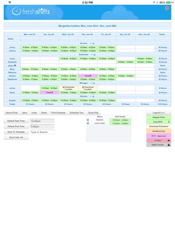 FreshShifts.com removes the headache and hassle of Employee and Resource Scheduling. Targeted at the Small to Medium size businesses in many sectors, such as: Restaurant, Hotel, Health Care, Call Centers and General Contracting.