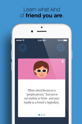 At the end of every quiz, you’ll get a FRIEND TYPE, which gives you insight into your personality and how you relate to the people you care about.