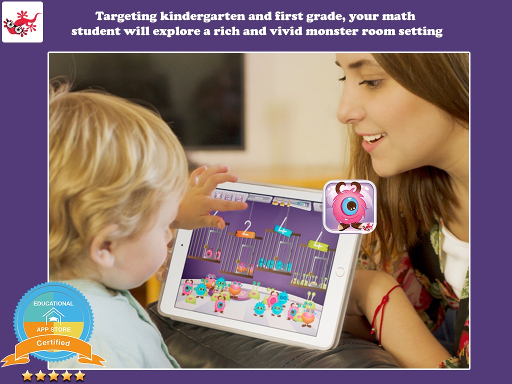 Targeting kindergarten and first grade, your math student will explore a rich and vivid monster room setting, engage and interact with colorful and fun monster characters, all while practicing critical early math skills.