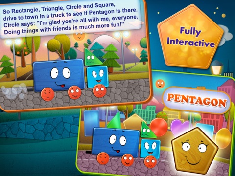 In this rich and interactive educational game, everything is alive - touch any scenery object or any of the leading characters to see what they can do. Join Circle as he sets off one morning to find his friend, Star. Circle meets many more shapes along the way who aid him in his quest!