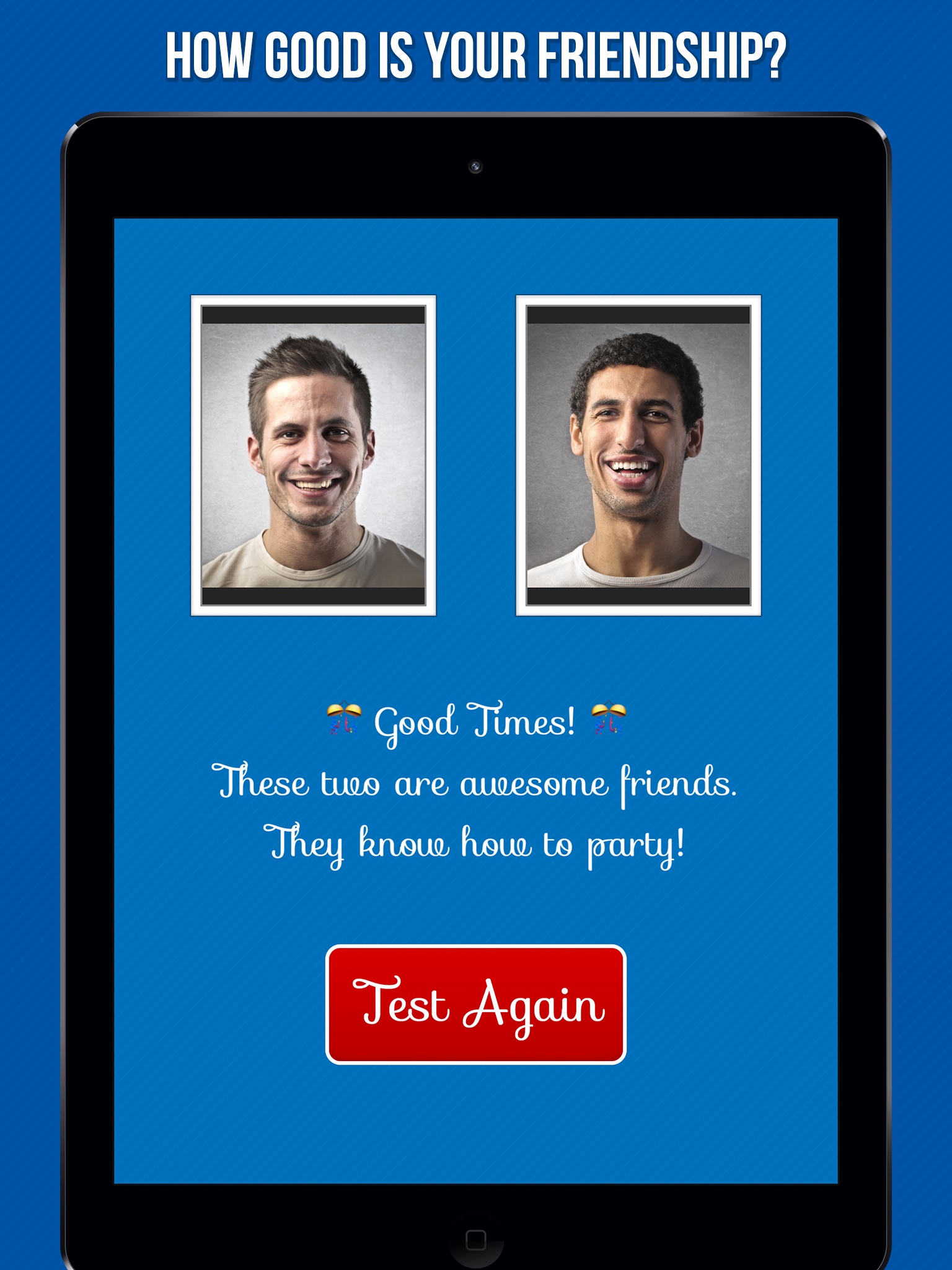 The Friendship Calculator is a fun and easy to use app, to help determine how good of a friendship you have. All you have to do is input a picture of yourself and one of your friends into the app. The app will then analyze the photos, using a complicated and sophisticated algorithm, and determine how good of a friendship you have.