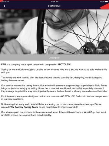 With this app you can enter the world of FRM Bike Technology, a company specialized in MTB racing components.