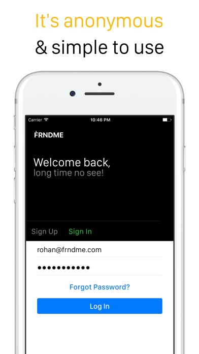 Frndme is the best anonymous chat app to meet new people online and make new friends! We will match you with a stranger around the world to have 1-1 random anonymous chat. It can be discontinued anytime. No spamming, no history, no name.