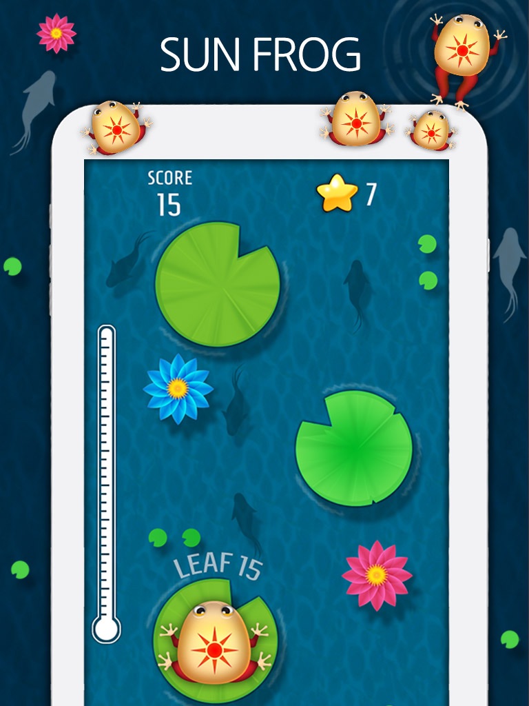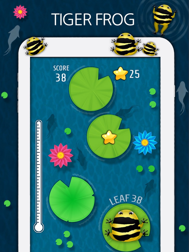 - Tap on the screen to control the frog to jump over the water.