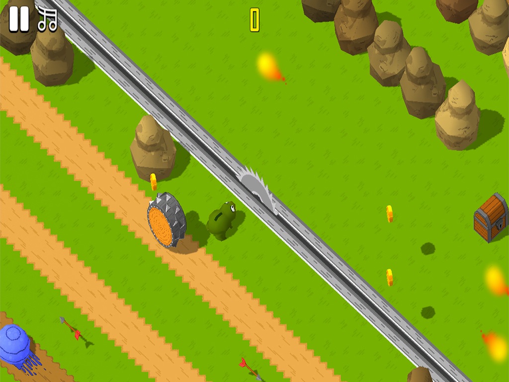 Watch out when the frog cross the road, there are poison slugs all the way, rolling spikes, fire traps, rolling slices and a poison mist that comes if you dont move.