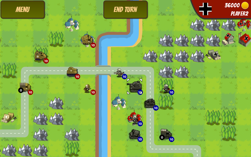 The two armies take turns building and commanding units on a grid-based map. The objective is to defeat the enemy army. There are two ways to defeat an opponent: destroy every one of the opponents units on the map or capture the opponents headquarters. The terrain on a map affects unit range of movements and the defense attributes of units stationed in that terrain. Capturing cities and enemy buildings will give the player new fundings at the beginning of each turn, with which the player can create a variety of new units (soldiers, tanks, planes, ships...) to gain power over his opponent.