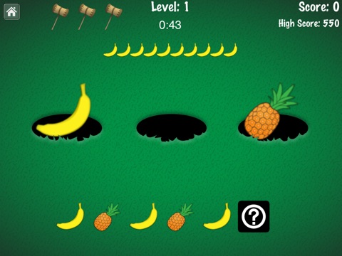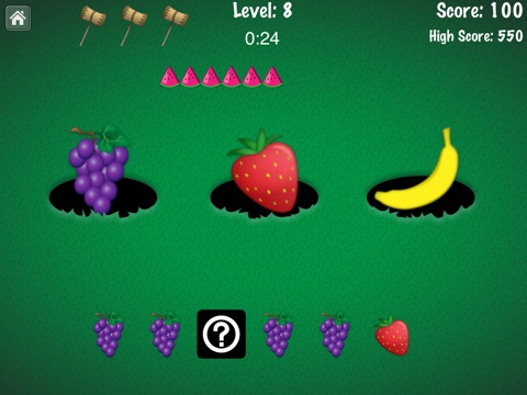 Figure out what fruit to smash by solving pattern sequences and then smash that fruit when it pops out of the hole. Smash 10 fruits without 3 mistakes or before time runs out.