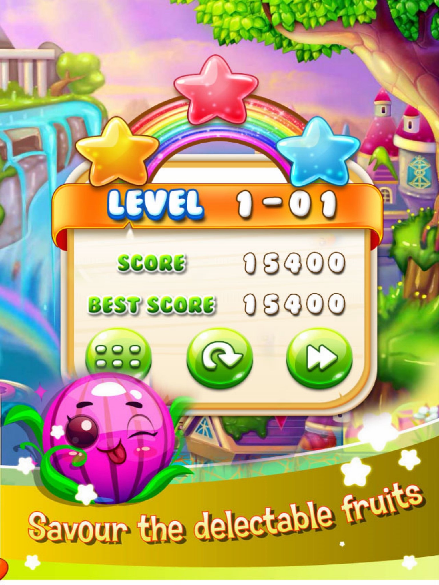 2. Match the fruits until the board clear, the fruits star will appear.