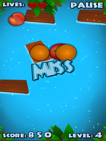 JUGGLE FRUITS!: Use your ninja reflexes and timing to move the apples, mango, oranges, melons, and peaches to the wood blocks. If you miss, the fruit will be lost in the water forever! 3 drops, and you lose the game.