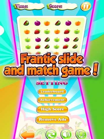 Within 60 action-packed seconds, eliminate different types of fruit by matching two or more. Simply touch the watermelons, apples, strawberries etc and slide your finger horizontal or vertical to gain points and score. Unlock different achievements and share your results. Its very addicting & can increase your memory.