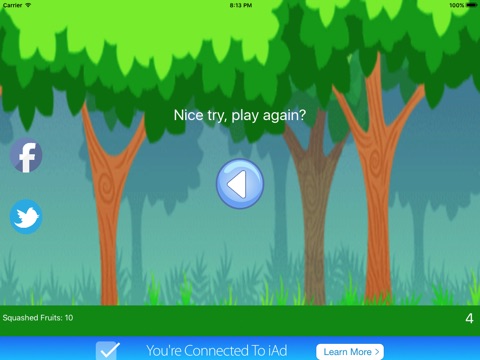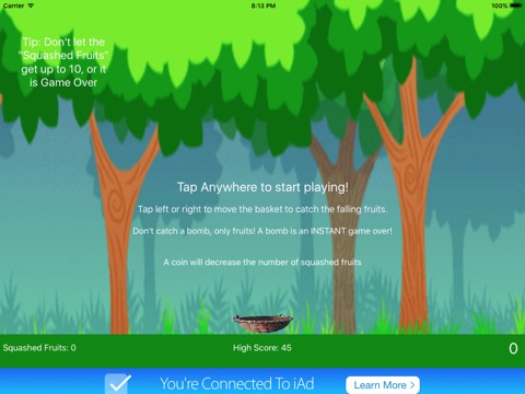 You think playing catch is that easy? Just wait until you try this game! In this game, your skills will be tested by catching all the fruits falling from the tree. Catch a coin to reduce the amount of Squashed Fruits! 10 squashed fruits will cost you the game while catching a bomb will do the same.