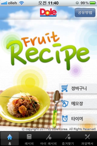 "Fruit Recipe"는 고품질의 신선한 과일과 채소를 제공하는 세계최대청과회사 돌(Dole)이 개발한 맛난 레시피로 가득합니다.