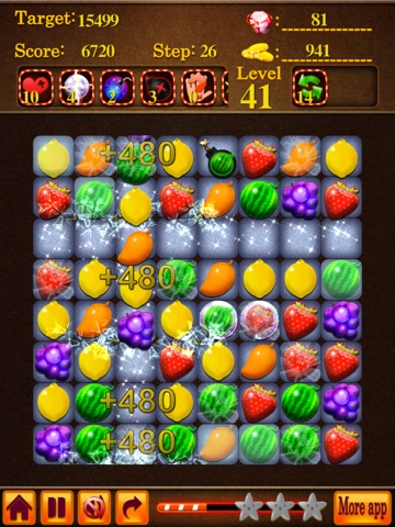 Gentle moving your finger in the screen, enjoy the fun of eliminating fruits.