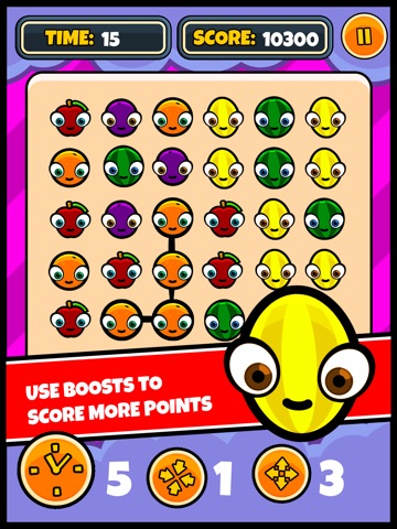 Play this new awesome puzzle game. Score as many points as you can by connecting the matching fruits before the time runs out. Connect squares for maximum points!