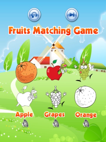 Kids play fruits matching game and learn English vocabulary words.