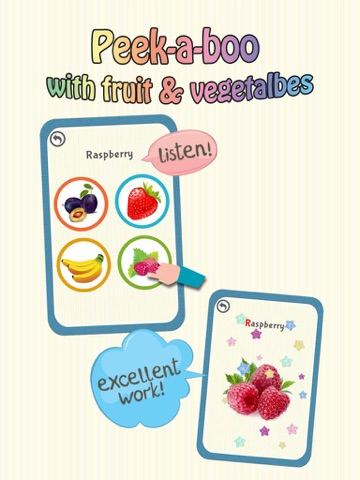 Keywords:flash cards, babyflash card,card, fruits, vegetable, apple, banana,tomato,water lemon, baby, sound, kid, baby, game, free, education