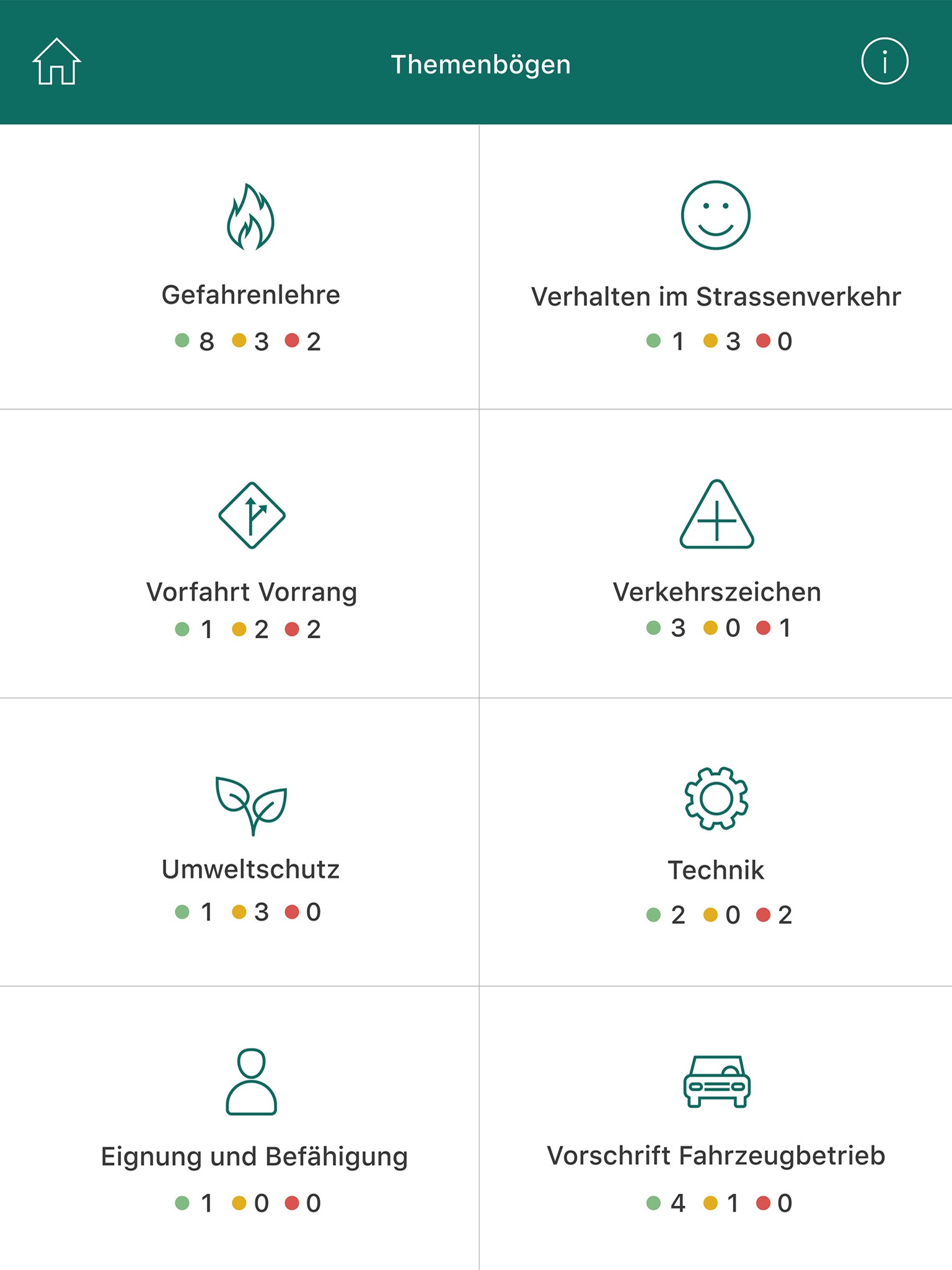 - Lernstatistik – einfache und übersichtliche Kennzeichnung der Prüfungsreife