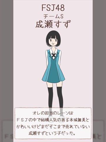 人気ナンバー1の女性アイドルグループ「FSJ48」の握手会で剥がしバイトをすることになった主人公とアイドル成瀬すずの男性向け恋愛ノベル。