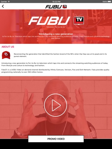 FUBU Television is the provider of media and entertainment for mul6 cultural consumers globally. Our brands reflect a range of experiences and connect with fans of hip hop, gospel, jazz, comedy, drama, news, lifestyle, sports, with a pro social agenda.