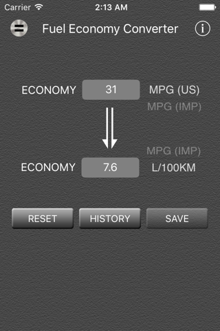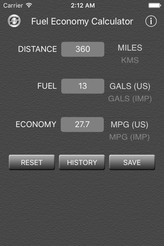 Calculates fuel economy in US MPG, Imperial MPG or L/100km.