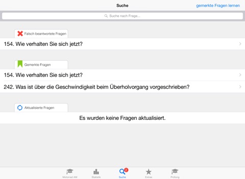 - Prüfungsmodus (es ist möglich eine Prüfung unter gleichen Bedingungen wie in der amtlichen Prüfung zu simulieren)