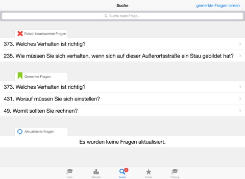 Da fehlt das mit Prüfung, also seit dem neuen Update sehr schlecht. Fette -----