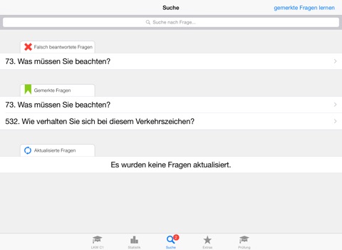 - Prüfungsmodus (es ist möglich eine Prüfung unter gleichen Bedingungen wie in der amtlichen Prüfung zu simulieren)