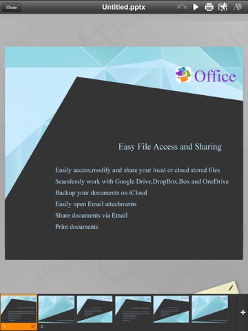 Quickoffice Suite allow you to view, edit, and create Microsoft® Office files (Word, Excel, PowerPoint) & view Adobe PDF® files on your iOS device with the original mobile MS Office suite of all time.