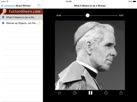 An audio collection of almost 300 talks of Archbishop Fulton J. Sheen, the great 20th Century Catholic preacher, writer, and radio and television personality, who died in 1979 and is soon to be Beatified in the process of becoming a canonized saint in the Catholic Church. Experience his famous, captivating voice that inspired millions, and is still inspiring listeners, to draw closer to Jesus Christ. You will see why he was admired by people of all religions.