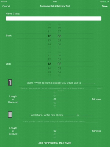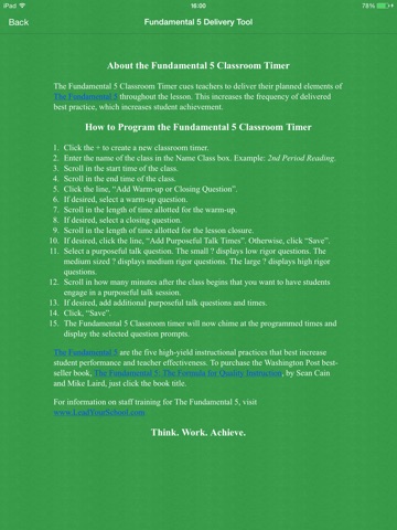 Classroom timer tool that supports improved implementation of The Fundamental 5