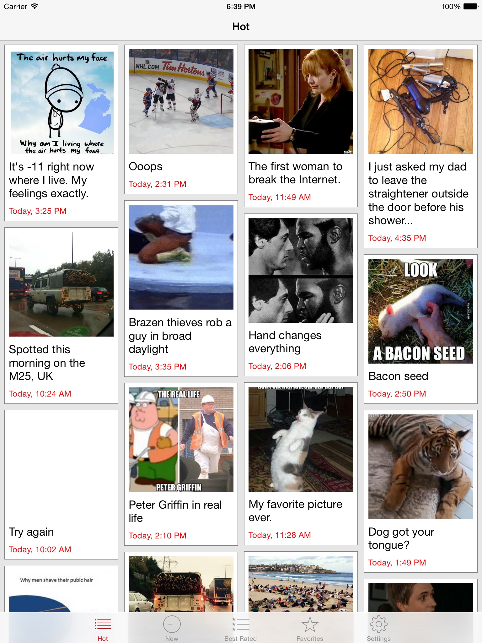 The funniest pictures on the Internet, constantly updated and always available in your hands. Share your favorites with your friends!