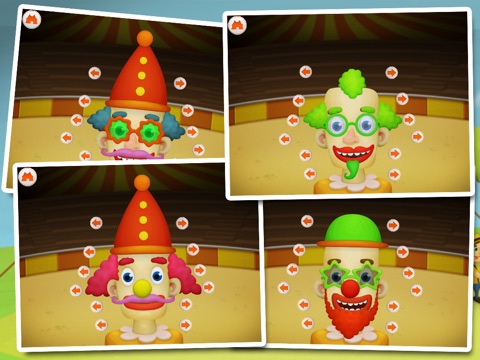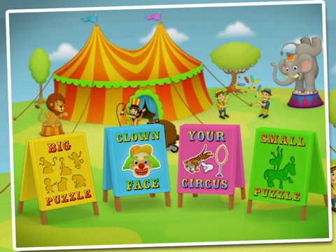 This circus game includes four different game types ( puzzle, jigsaw puzzle,stickers and dress the clown). Each game is design to make you kids happy :)