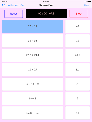 Fun Maths, Age 11-14 is a challenging Maths Quiz program for children aged between 11 and 14. All quizzes come in four interesting formats, testing the users the most common aspects of mathematics, including: