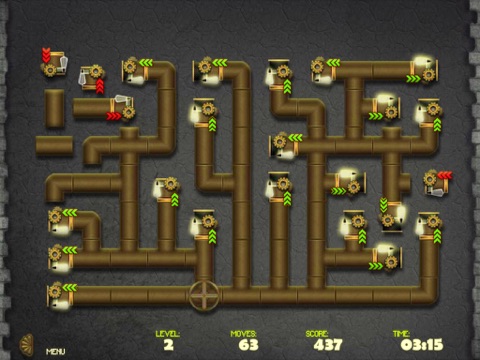 connect all the pipes and the activating mechanism. as long as the pump connected to the valve will start to work, turn green. remember, your time is short. Rotate the pipes and pumps to get all pumps to turn green. can you solve them all?