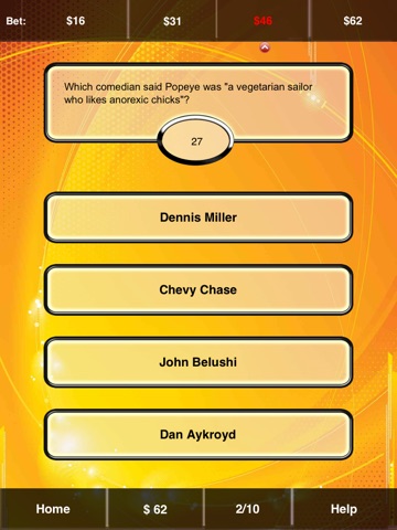 Why settle for your average trivia quiz when you can now play with lively animation and over 40 sound effects in 1 player, 2 player, and team modes? Challenge your friends on FaceBook and then compete for high scores on our global leader board.