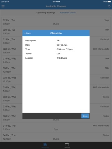 Sessions lengths vary. Please download the App to view the upcoming schedule and make bookings!