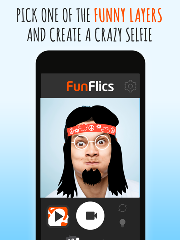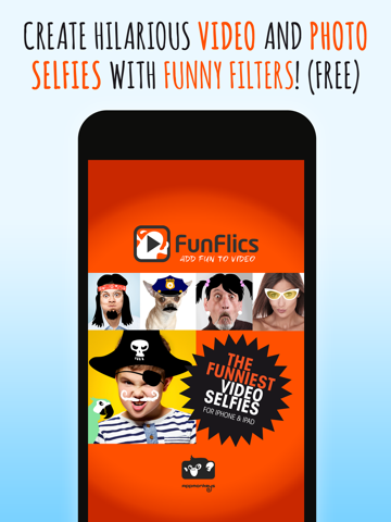 Fun Flics Snapchat style video selfie camera with funny filters, great for Kids.