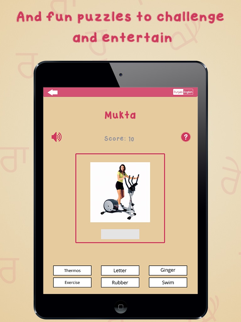 This application is designed to help adults and children to practice speaking and reading Punjabi actively. If you are learning English you can simply switch language.