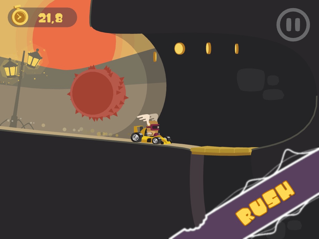 Funky Karts is a continuous motion platformer with 64 dazzling levels full of prickly obstacles and pesky robots.