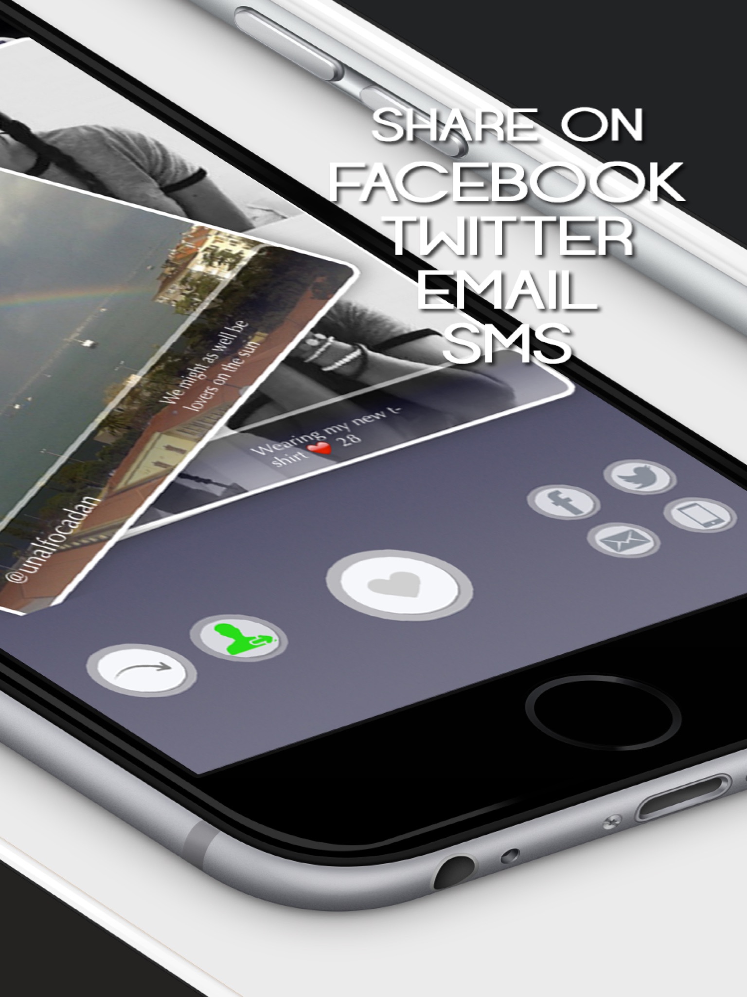 Post the current image to Facebook and Twitter! Also send it with e-mail or text message!
