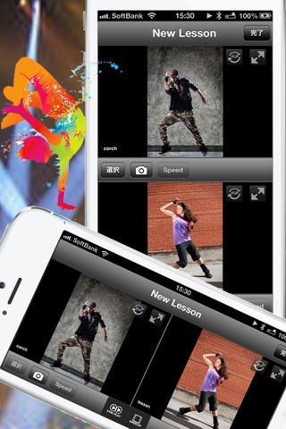 Displaying replay of a lesson video on one window and your images taken by a camera of iPad on the other, you may practice while comparing movements of yourself with those in the lesson video.