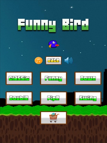 - Funny: This is a new mode. In mode, the bird always fly in the center of screen, so player taps on left side of screen for the bird fly higher or taps on right side of screen for it fly lower and avoids pipes.