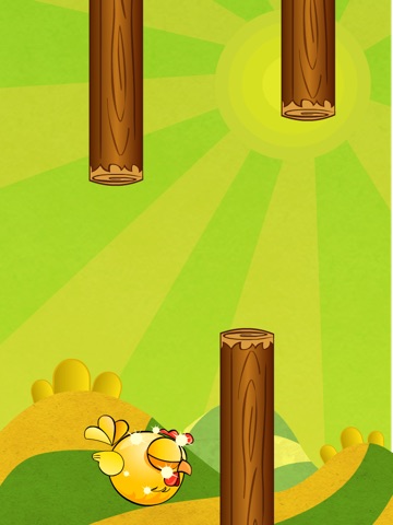 Chicken escaped the farm and is flying towards wilderness to make a new home. Control her flight to help her getting there. Tocuh to fly up and let go to fall down. Pass through wooden obstacles and get points. Share your best score on FB and Twitter with friends and family. This game is awesome.