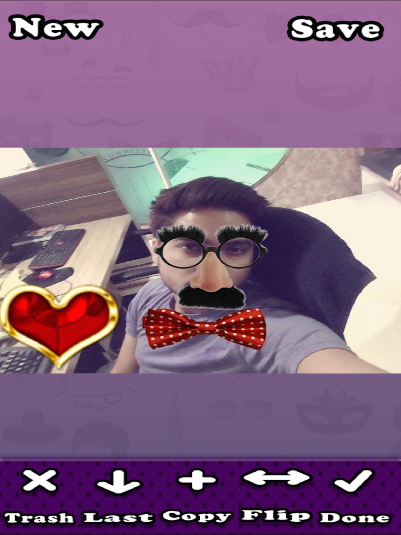 Make Any photo it funny or more serious with Funny Face Changer app with almost 17 different stickers. We have covered many funny stickers like hair style, beard, crowns, hats, caps, hearts, Glasses, Bow ties, necklaces, Short hair, long hair, turbans, lips with different laughs, eyes expressions.