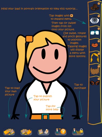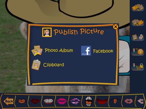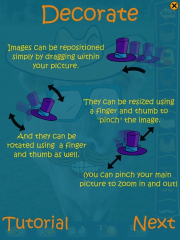 Have lots of fun with your photos! With Funny Fotos! you can load your pictures (from camera, photo album or clipboard) and then decorate them with funny hats, beards, glasses, hair and other facial features. Pictures can then be saved (to the photo album or clipboard) or published to Facebook to share with your friends.