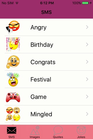 angry sms, anniversary sms, april fool sms,birthday sms, break up sms, cool sms, cricket sms, eid sms, rajnikant sms, santa banta sms, smile sms,