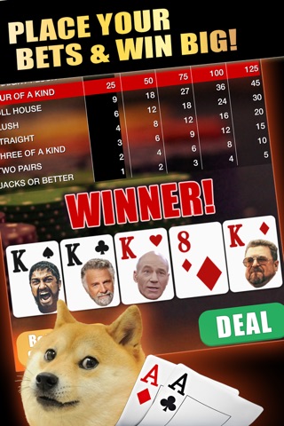 Funny Memes Video Poker brings exciting Vegas Casino style Video Poker to your pocket, anytime anywhere! The games are easy to learn, simple to play and hours of fun! Select a game of your choice, choose your bet and start drawing cards!