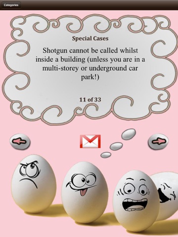 This app features the complete list of 270+ Shotgun rules categorized in 6 sections.