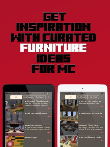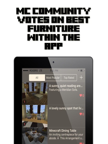 This app features furniture creations for Minecraft. Join thousands who enjoy new furniture creations, which are added each day!